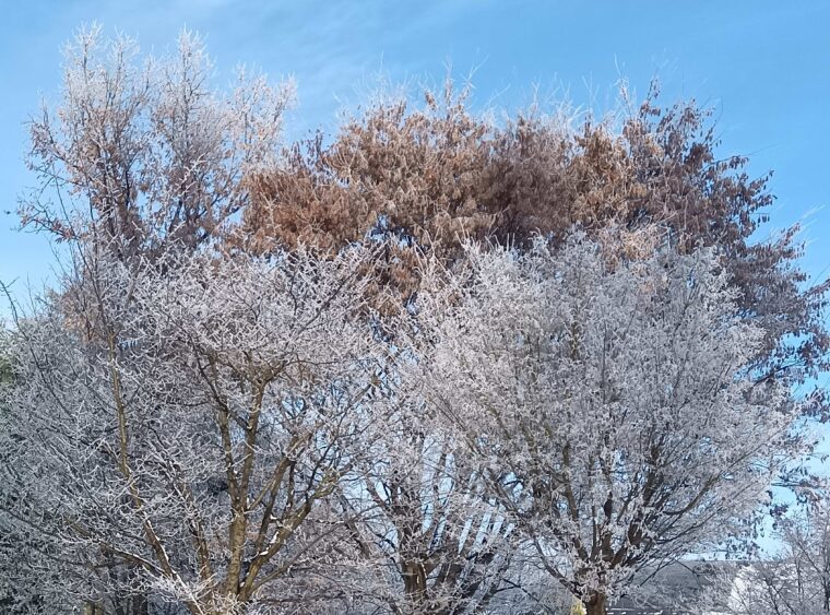 高原では珍しくありませんが、今回は平野部で見られたため割とびっくりしました。(写真は小布施総合公園のポプラ並木)