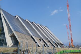 暖かくなってきて、近所を散歩することが増えてきました。そうしたらエムウェーブに巨大なクレーンが設置されていました。どうやら半年間の補修工事に入るそうです。