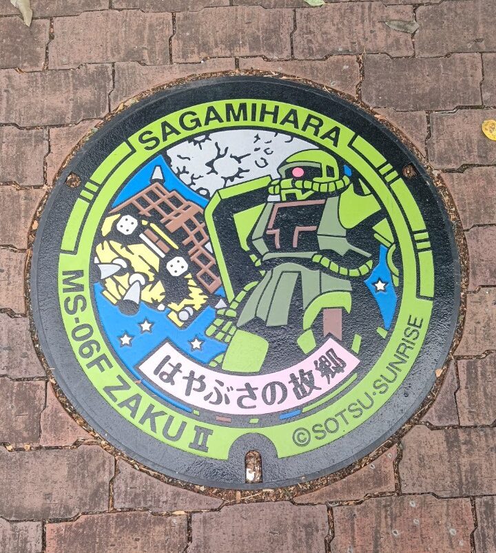 相模原市博物館に展示されていたあのガンダムマンホールが実際に市内の路面で活躍しておりました。あのお姿がいま足元に!