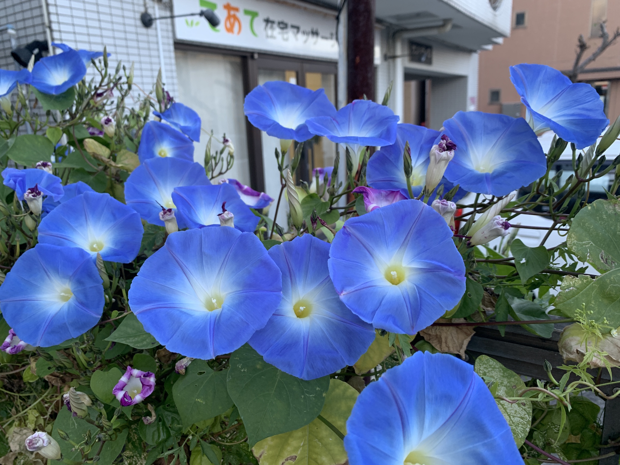 11月も終わるというのに未だ咲き乱れる施術所花壇のヘブンリーブルー。