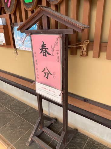 おなじみパークセンターの二十四節気看板。3月20日から「春分」に入りました。