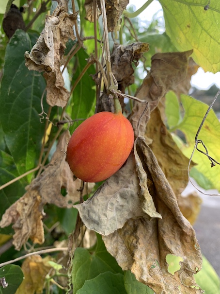 カラスウリが熟れてきていました。3日には木枯らし一号が吹きました。