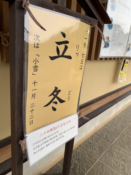 おなじみパークセンターの二十四節気看板。11月7日から「立冬」に入りました。