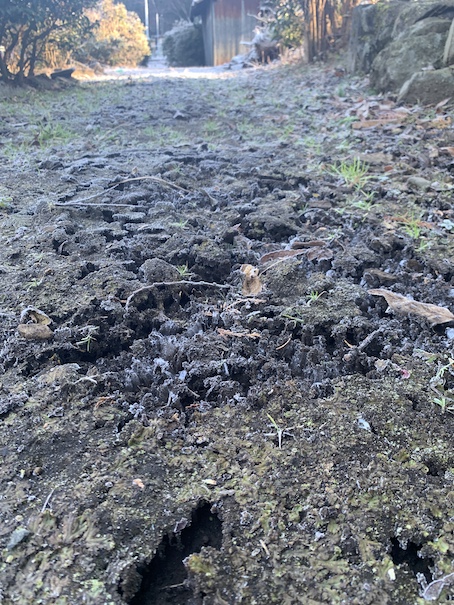白い朝 2025年12月17日 相模原だより 相模原市内でも特に寒さの厳しい鳥屋周辺。しっかりと霜柱が立っていました。 お茶の葉も霜で白く凍っていました。 鳥屋の冬は一足早めです。 (๑·́ω·̀๑) bot