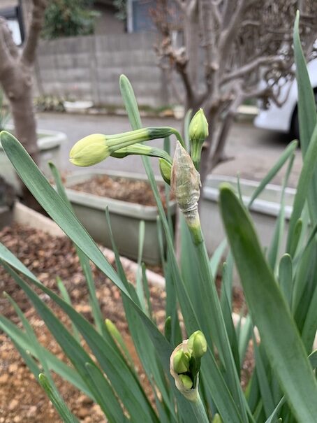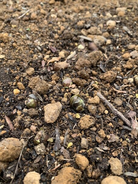こちらはN様宅の福寿草がちょっとだけ頭を出し始めたところ。