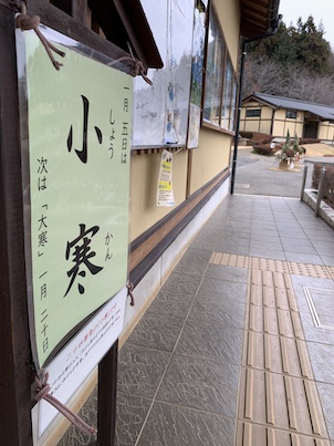 2026年もお世話になります。おなじみパークセンターの二十四節気看板。一月五日から「小寒」に入りました。