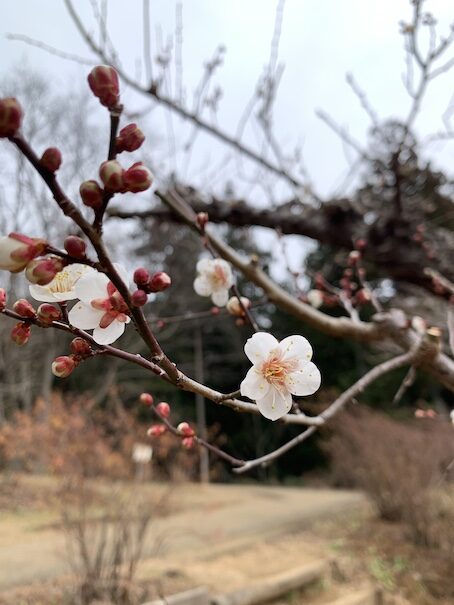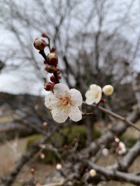 寒空の下、咲き始めた梅の花。冬の花っていいですよね。
