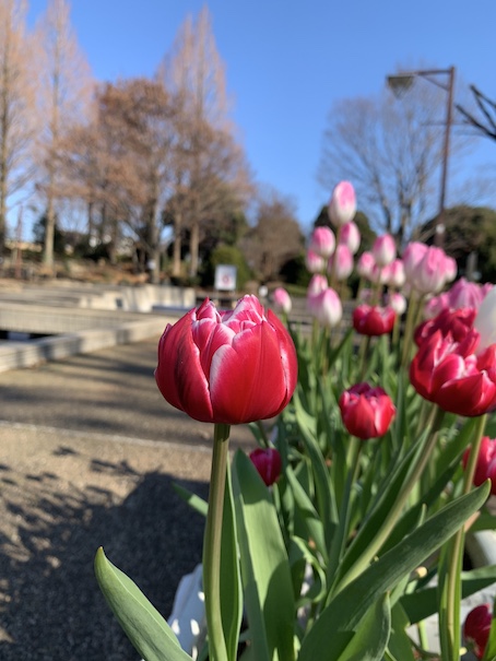 バラ園のプランターのアイスチューリップもまだまだいい感じです。寒い時期のチューリップは春より花期が長いようです。