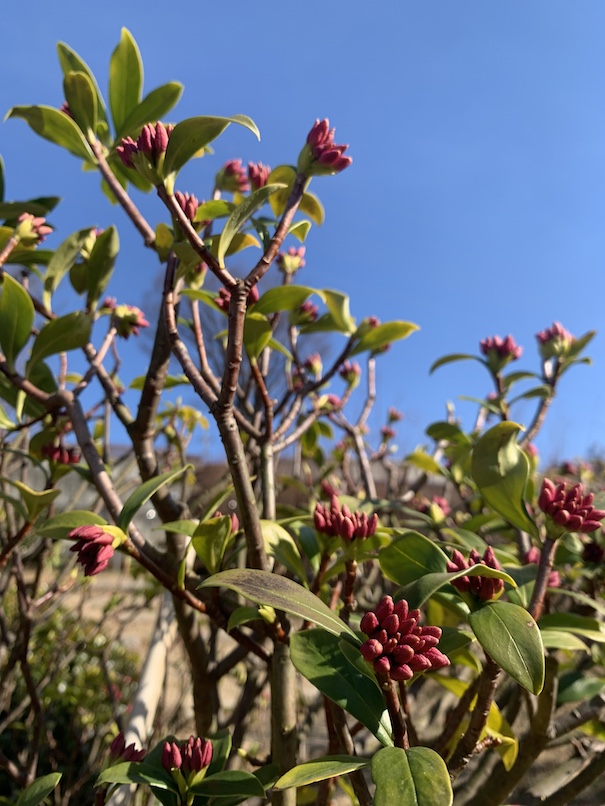 水の苑地の沈丁花。すぐ咲きそうに見えてここからが意外と時間かかるんですよね。