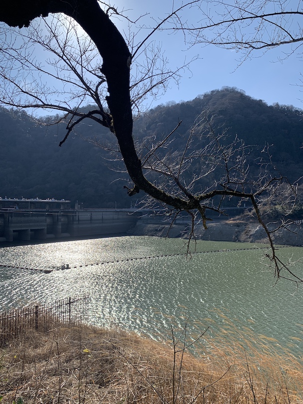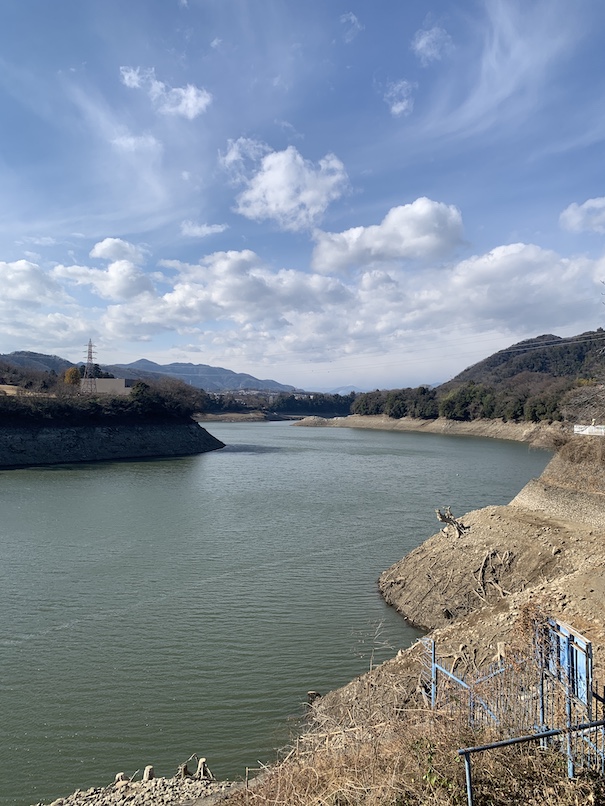 相変わらず水位低めの津久井湖。岸辺の地層がはっきり見えます。そろそろまとまった雨が欲しいところ。