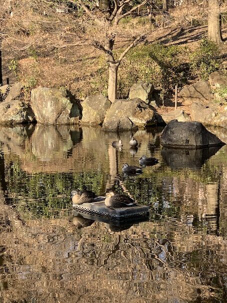 池のカルガモ。数増えたかな?