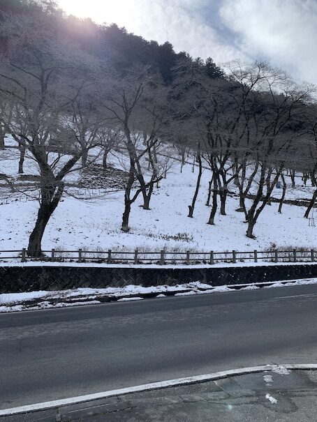 城山の桜の斜面も真っ白に染まりました。この雪が寒さの峠になりそうな感じですね。