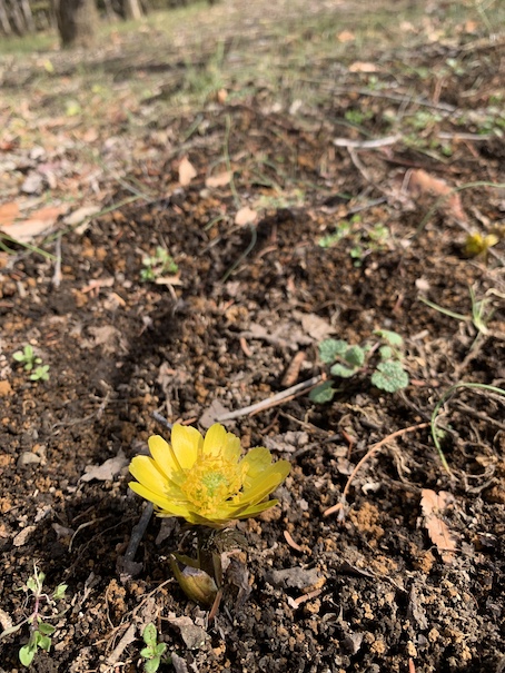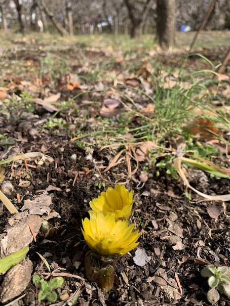 北公園の福寿草。ポツポツと咲き始めました。