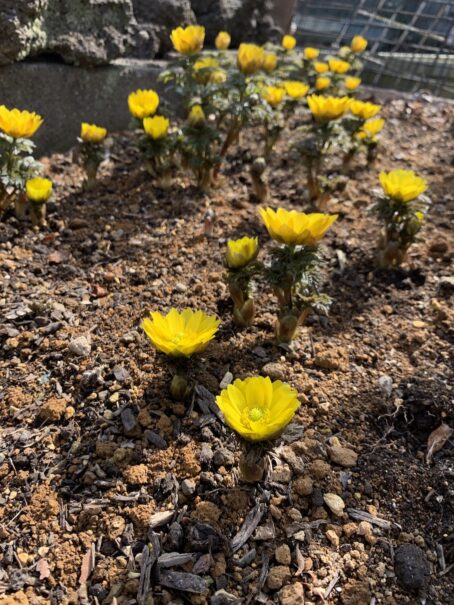 N様宅の福寿草もだいぶ咲き揃ってきました。このくらいの咲き具合が一番きれいですね。