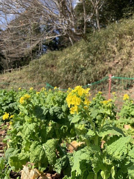菜の花にミツバチが来ていました。ミツバチを見るとホッとしますね。