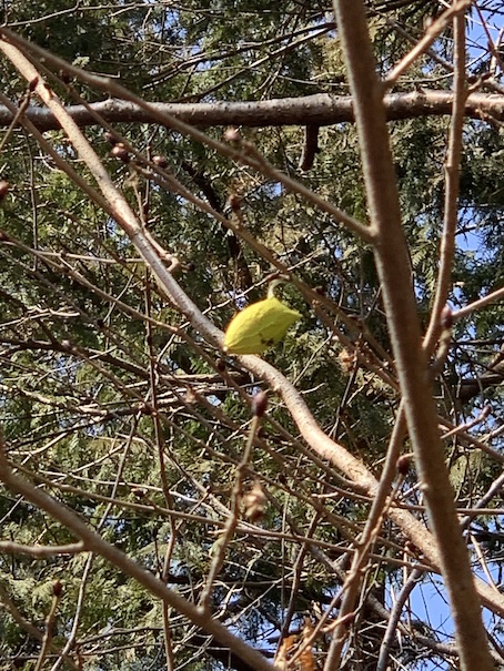 枯れ枝にひと葉残っているなと思ったら、ウスタビガの繭のようでした。ずんぐりしたもふもふの蛾になります。