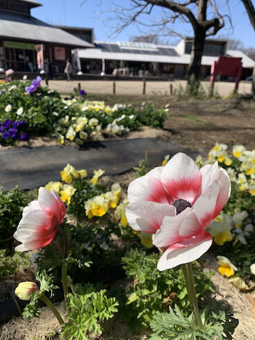 温室前の花壇はルピナスやアネモネが早くも咲いていました。