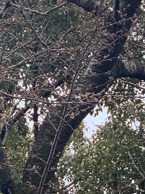 園内のソメイヨシノ、ちょっと綻び出した蕾がありました。週末には咲いているかな。