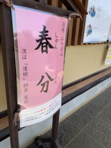 おなじみパークセンターの二十四節気看板。3月20日から「春分」に入りました。