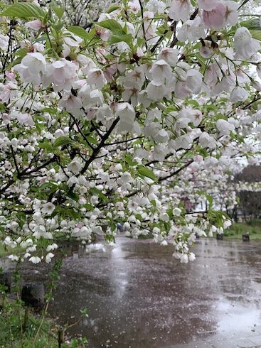 今年の桜は全体的に雨の日が多かったです。でも雨の日は空いてるし花粉も少ないのでオススメです。