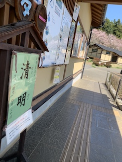 おなじみパークセンターの二十四節気看板。4月5日から「清明」に入りました。