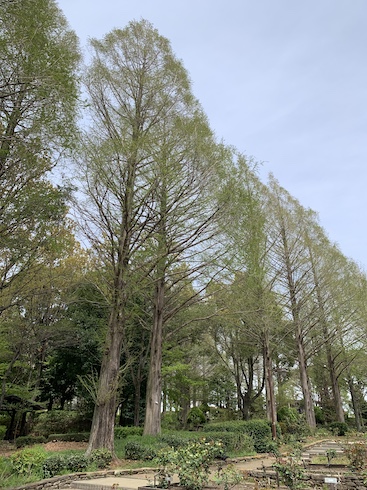 相模原北公園のメタセコイヤ。若葉色に芽吹き始めていました。