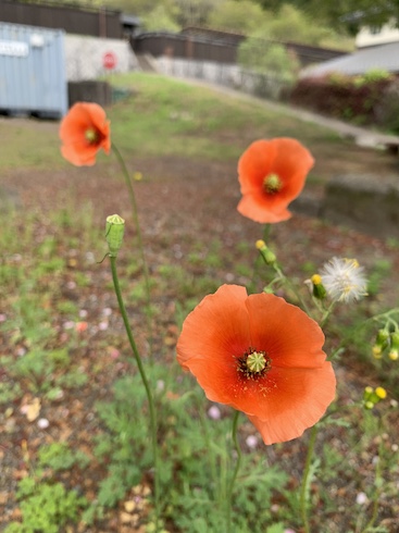 ケシの花も咲いていました。でもこのヒナゲシ(ナガミヒナゲシ)は有毒で素手で触れると手がかぶれる恐れもあるそうです。現在特定外来生物には認定されていないものの、繁殖力が強く在来植物の育成を妨げる作用も持つようで、注意喚起をする自治体も増えてきているそうです。