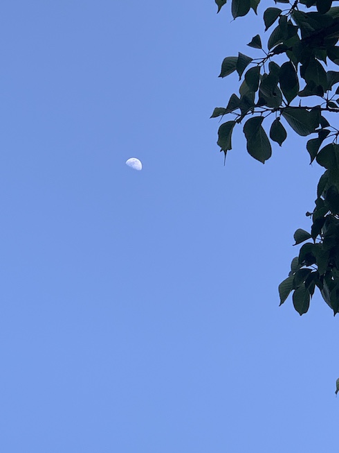このごろ曇った日が多くて月を見ることも少なかったけど、気がつけばもう半月になっていました。時の経過を緑や月を見て実感するようになるなんて、だんだん日常に鈍感になっているのかしらなんて思ってしまいます…。
